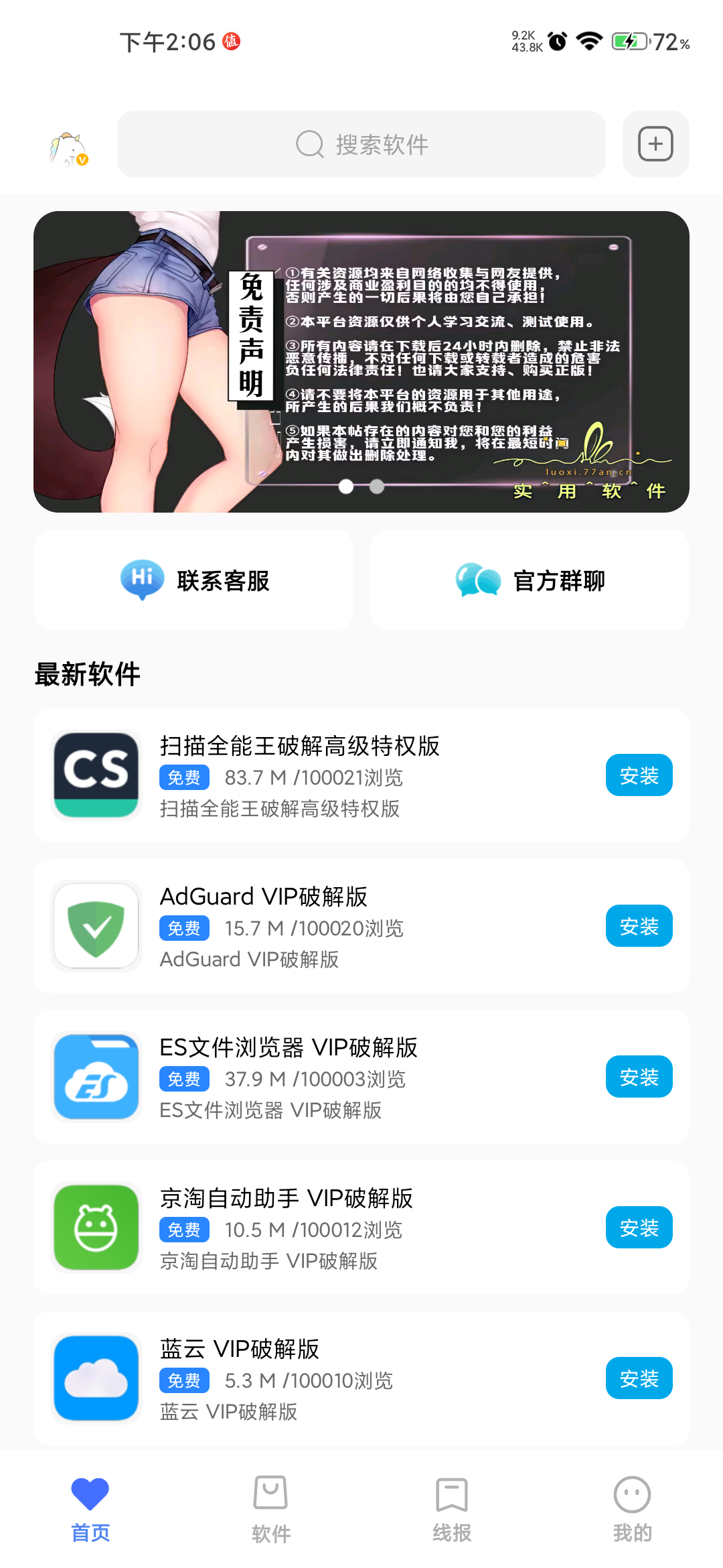5.所有软件都经过人工测试保证无病毒/无广告/无弹窗才上架!